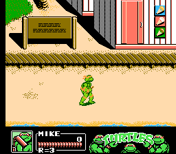 This game, like the previous, was a scrolling fighting game. It can be played with one or two players. The 2 player game has 2 modes: in mode A the players can hurt each other, while in mode B they cannot. In the game, the players move forward, fighting Shredder's minions. The colored foot soldiers have various attacks: for example, red soldiers throw shuriken, while pink soldiers hold spears. In addition to the standard attack (B) and jump kick (A, then B), the player can also throw enemies backward by pressing down and B, and other enemies can be hurt by a thrown foot soldier. Also, by pressing A and B together, the player can use a special attack, which depends on the turtle. Третья (для американского рынка) часть серии игр о Черепашках Ниндзя. Наши герои отдыхали и расслаблялись на пляже, но враг не дремлет! Шредером была похищена Эйприл вместе с целым городом. Придется выручать. Вид изометрический сбоку. Одна (или две) черепахи должны пробиться сквозь толпы врагов, нападающих кучами и поодиночке. Надо сказать, что в Японии первая часть американской серии издавалась под другим названием, соответственно следующая часть не могла иметь приставку 2. Получившийся сдвиг в нумерации частей мы можем наблюдать на всей серии.